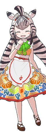 「ちょっと私のシマシマはほかの娘と違っておしゃれでしょ? 濃いのと薄いのが交互にあるの。オグロヌーとは仲良し! いつもなんとなくつるんでる。なんとなく」