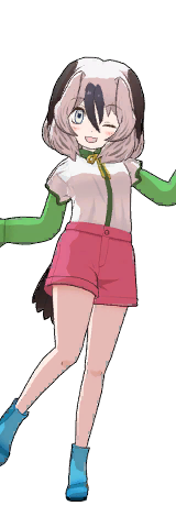 「気分を上げてステップ踏もう、右、左、右、左… えへへ、自慢の足、見てくれる? ほらっ、高く上げられるように なったの。あ、きゅーあいじゃないから、勘違いしないでね。 好きな色? もちろん青だよ! ジャパまんも青いやつが あるでしょ。あれが好き。味は何でもいいの」
