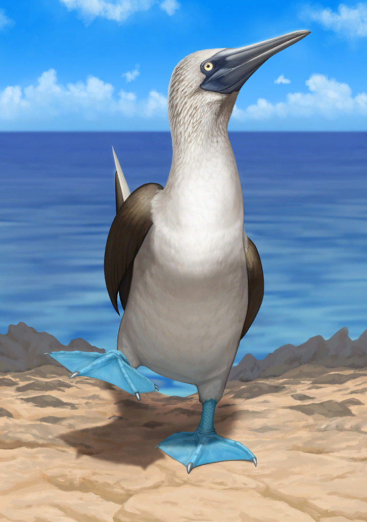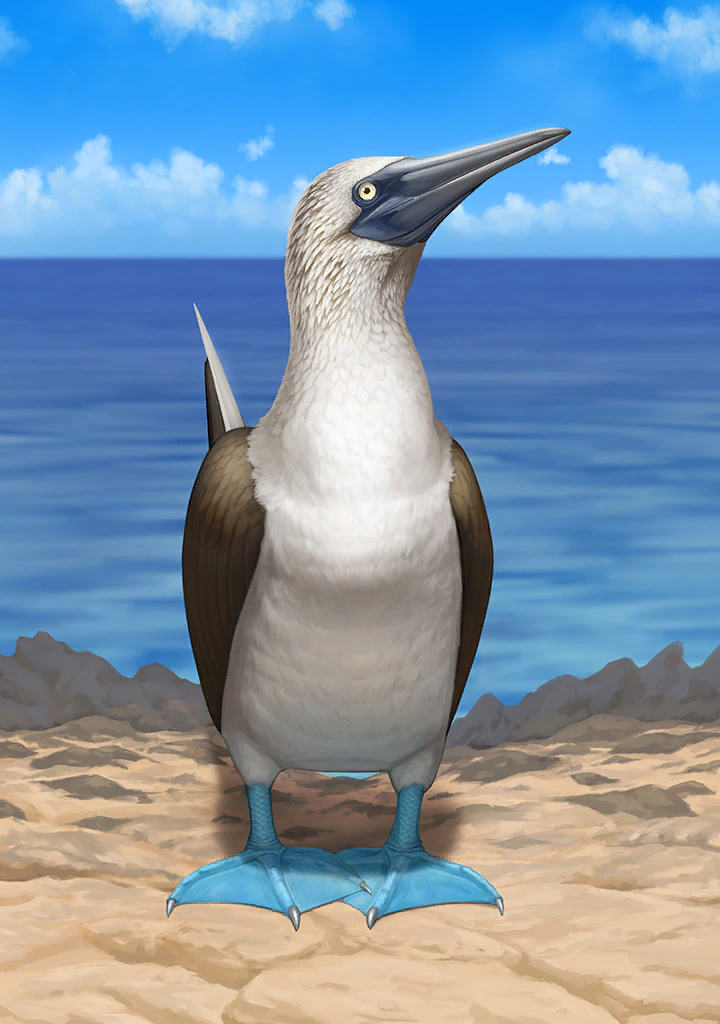 名前の由来になった鮮やかなブルーの足を交互にあげて、求愛ダンスを披露するユニークな海鳥です。可愛らしいしぐさと表情をしていますが、狩りとなると印象が一変。上空から小魚の群れを見つけると、翼を折り畳み弾丸のような鋭さで海面に飛び込みます。狩りは集団で行うこともあります。