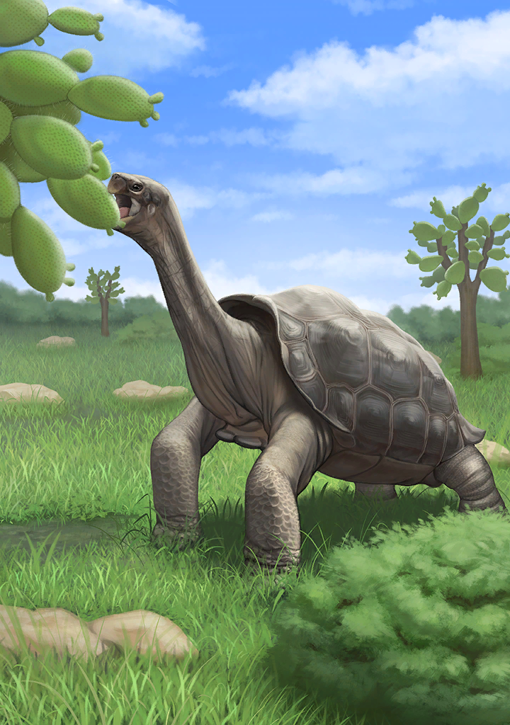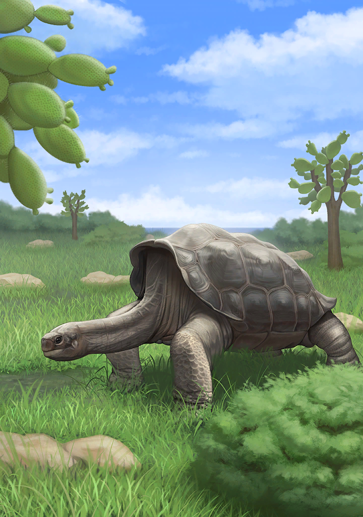 かつてピンタ島で穏やかに暮らしていましたが、食用の乱獲、家畜による植生の破壊、ネズミなどによる卵や幼体の捕食により絶滅しました。1971年に1頭のオスの生存が確認され「ロンサム・ジョージ」と名付け保護していましたが、2012年に亡くなりました。推定100歳を超えていたそうです。