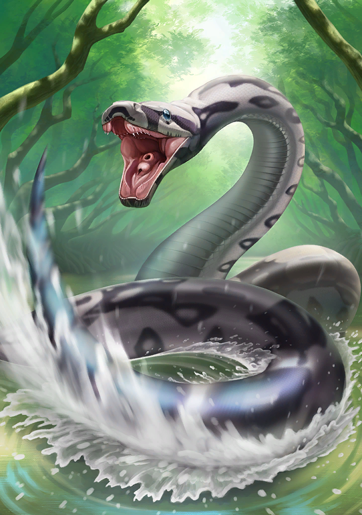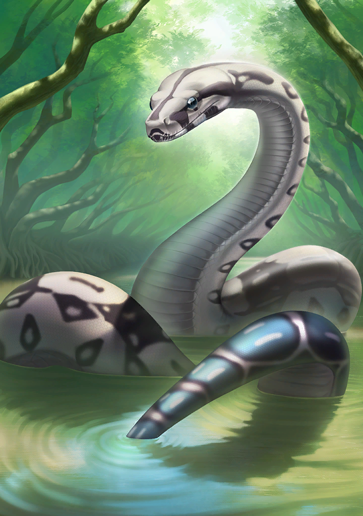約6000~5800万年前の暁新世に生息していた史上最大級のヘビです。2009年にコロンビアで化石が発見され、全長は約13m、体重は1135kgと推定されました。現存するオオアナコンダ(最大全長9m)の約1.5倍もあります。ワニを丸のみするイメージがありますが、最新の研究では魚を食べていたと考えられています。