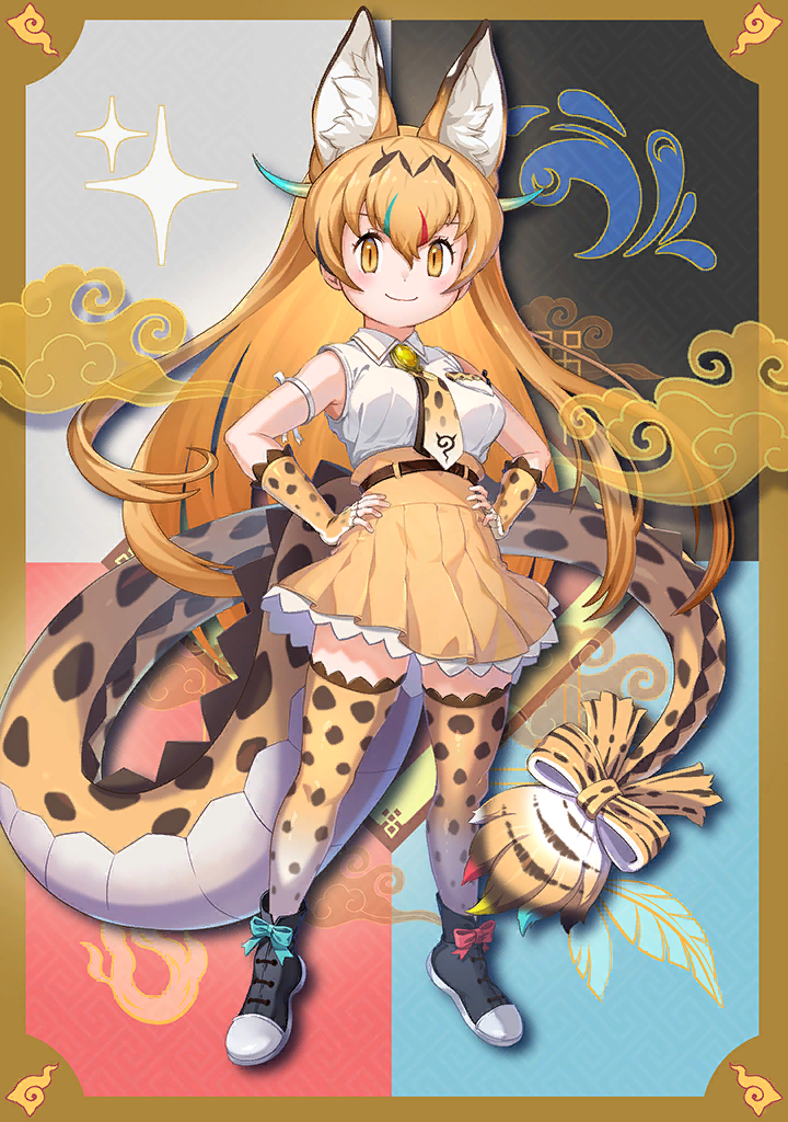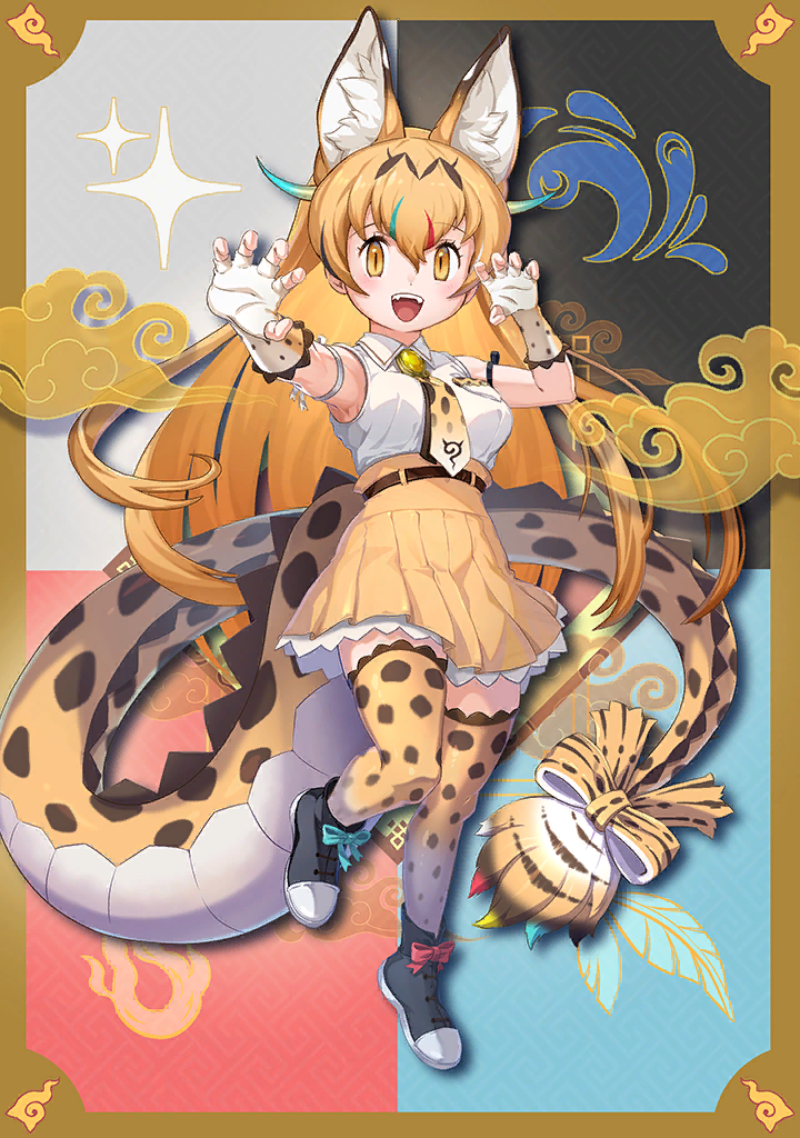 黄龍、黒龍、白龍、赤龍、真・青龍ら五龍神の力を授かったとされるサーバルが変身した姿。五龍神の力はあまりに強大で、受け止められるアニマルガールは存在しないと思われていました。それゆえに常にこの姿を保つのは難しいようで、特別な状況、特殊な条件がそろう事が顕現の条件のようです。