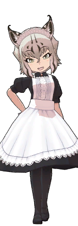 「森の中の『ジャパリカフェ』でたまにお手伝いしてる ボブキャットよ。わたしは、季節によって活動時間を変えるの。 周りの状況に敏感にならなきゃね、オシャレと一緒よ。 カフェにくる他の子たちはみんなからかいがいがあって 楽しいわぁ、ウフフ」