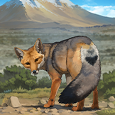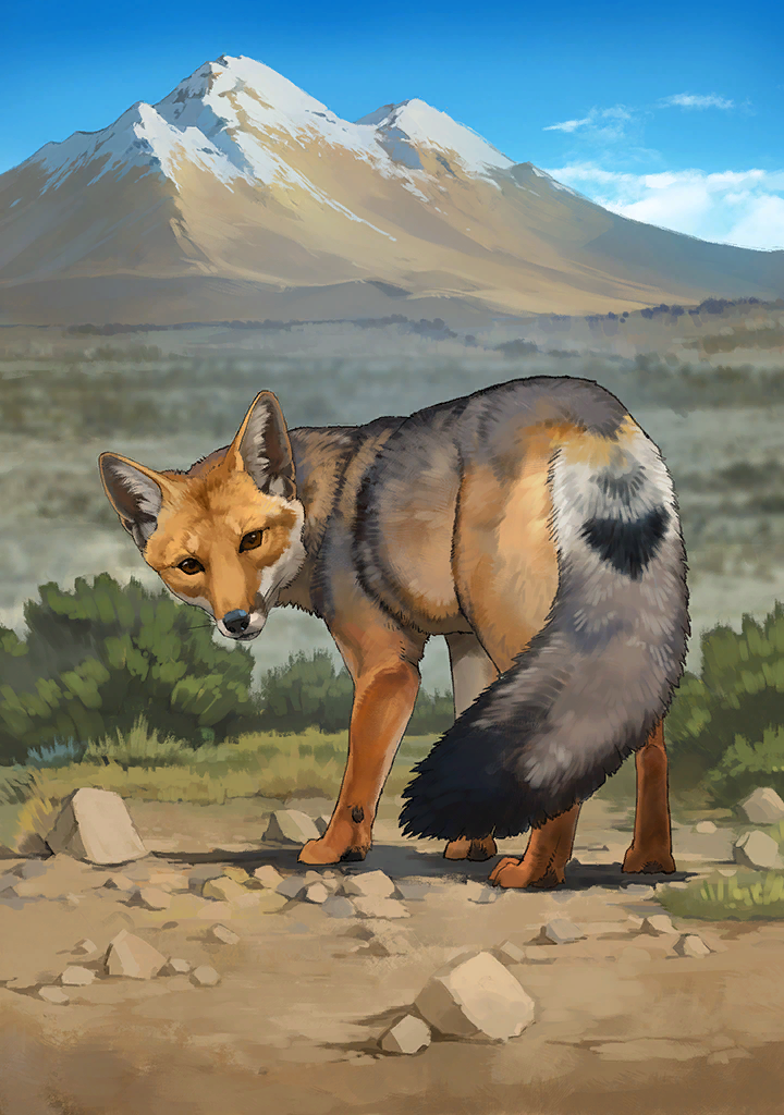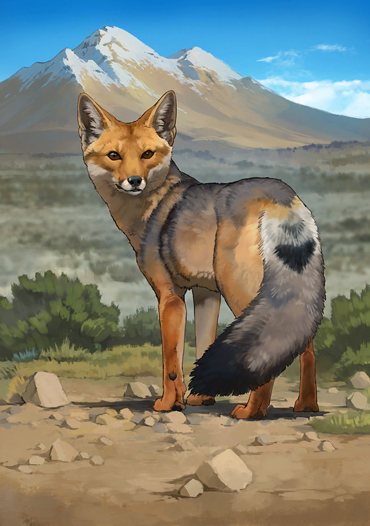 見た目が似ていて名前にもキツネとついていますが、系統的にはキツネの仲間とは離れています。主に肉食ですが、植物質や果実も食べる雑食性です。アンデス山脈を主として南米大陸の西側に生息していて、高地だけでなく灌木地や砂漠にも現れます。警戒心が低いといわれています。